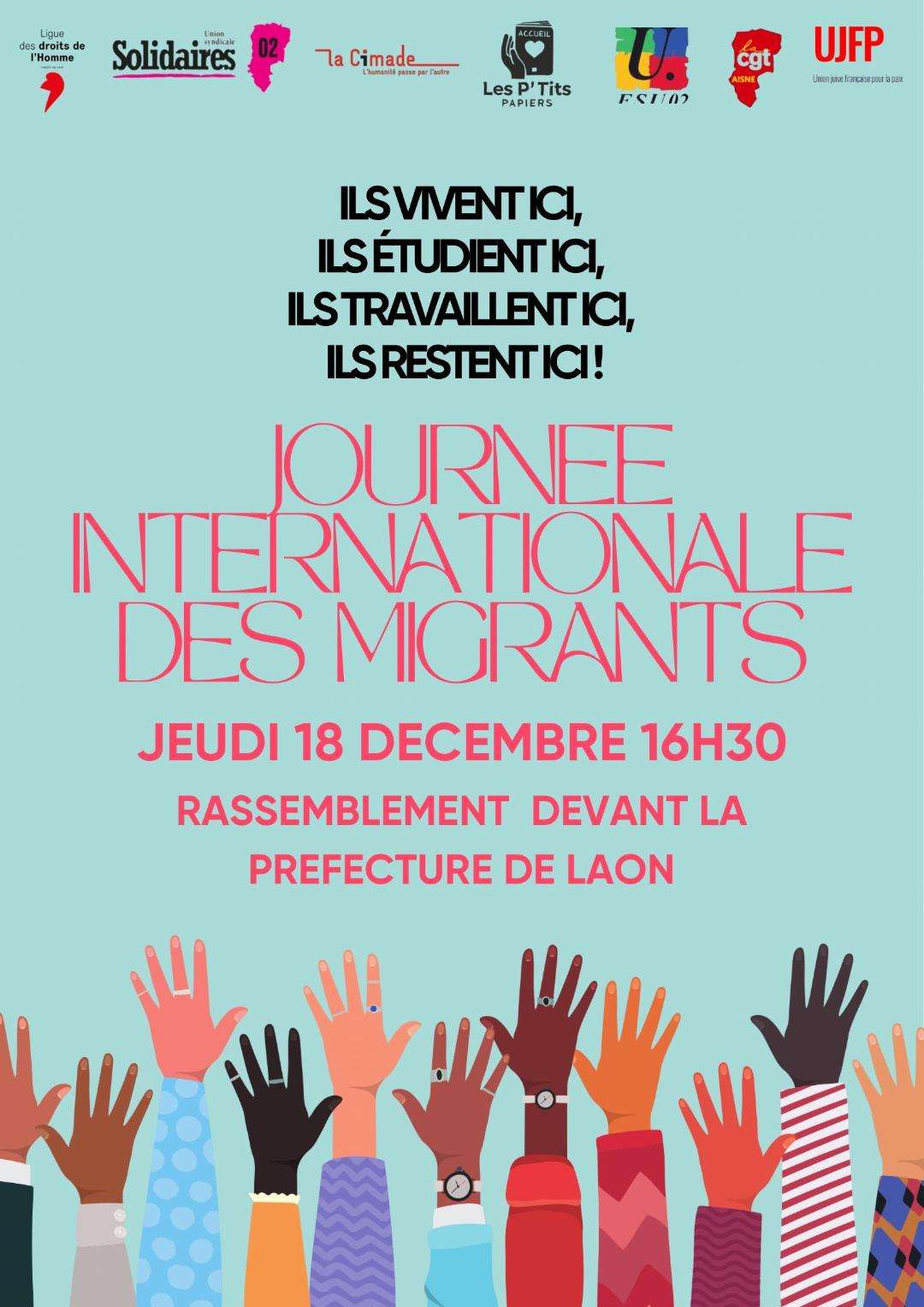 Le 18 décembre 16h30 rassemblement à la préfecture de Laon pour la journée mondiale des migrant·e·s