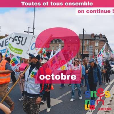 La FSU 02, avec l’ensemble des organisations syndicales appelle l’ensemble des salariés à se mettre en grève le 2 octobre et à participer aux différents rassemblements et manifestations.